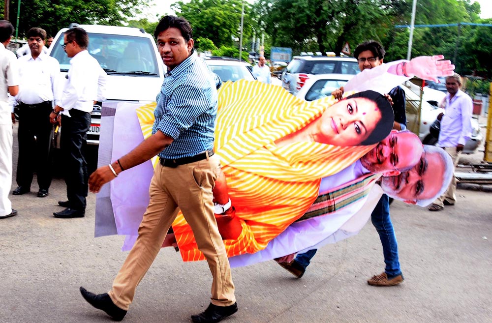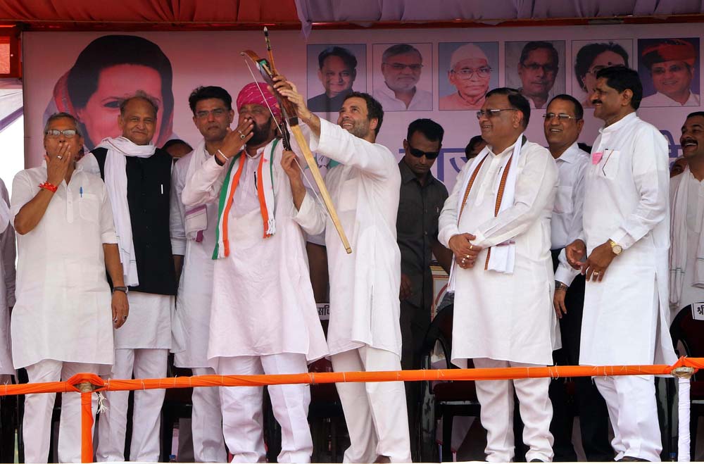 Banswara: Rahul Gandhi, the All India Congress Committee Vice President was in Rajasthan on Wednesday. The Congress leader not only addressed a rally– Kisaan Aakrosh at Banswara, but also caught up with a distant relative in Jaipur. At the rally, Rahul heavily came down upon the policies and attitude of BJP led NDA government in center towards the plight of farmers. “For GST, BJP can open the parliament at midnight, but they do not have a minute to discuss the issues of farmers,” he told the gathering. He also alleged that BJP cares only about the rich industrialists and not about the poor. Rahul was accompanied by Rajasthan state Congress leaders including former chief minister Ashok Gehlot and state president Sachin Pilot. Meanwhile, Jaipur is also gearing up for BJP’s national president’s programme on Friday. To get a sneak peak of Congress vice president’s rally and, his personal visit and of course the ongoing preparation of Amit Shah’s function, browse through our photo feature. Picture credit: Chandra Mohan Aloria