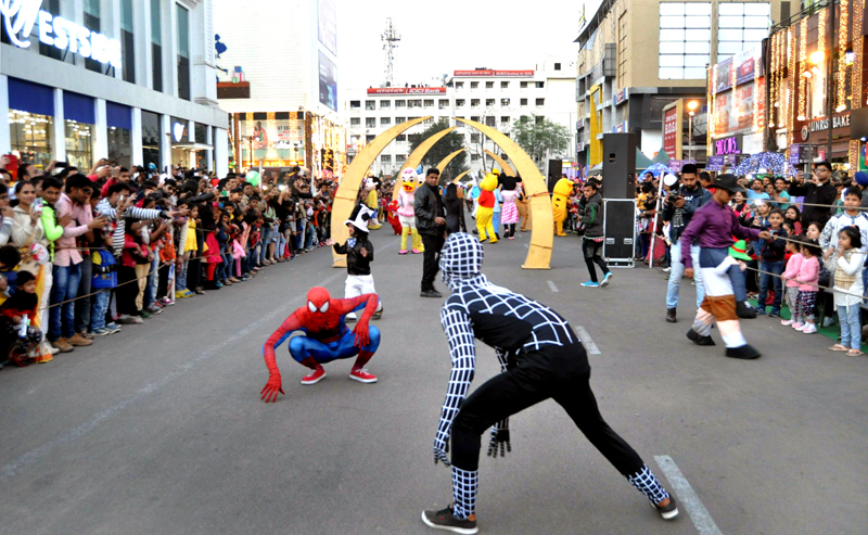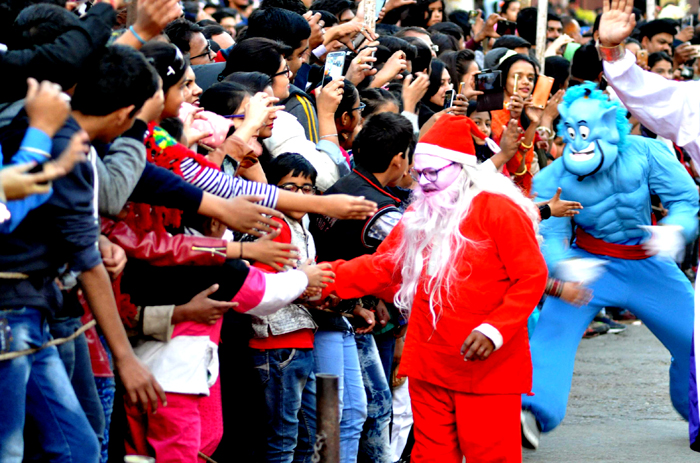 Jaipur: December 25 was the most exciting day for the children of Jaipur, as during Christmas celebration, a procession moved around Gaurav Tower in which performers had not only become Santa Cluas, but Spiderman and Black Spiderman, British Drummer and many more. Hundreds of children had gathered on both sides of roads with their parents to enjoy it.